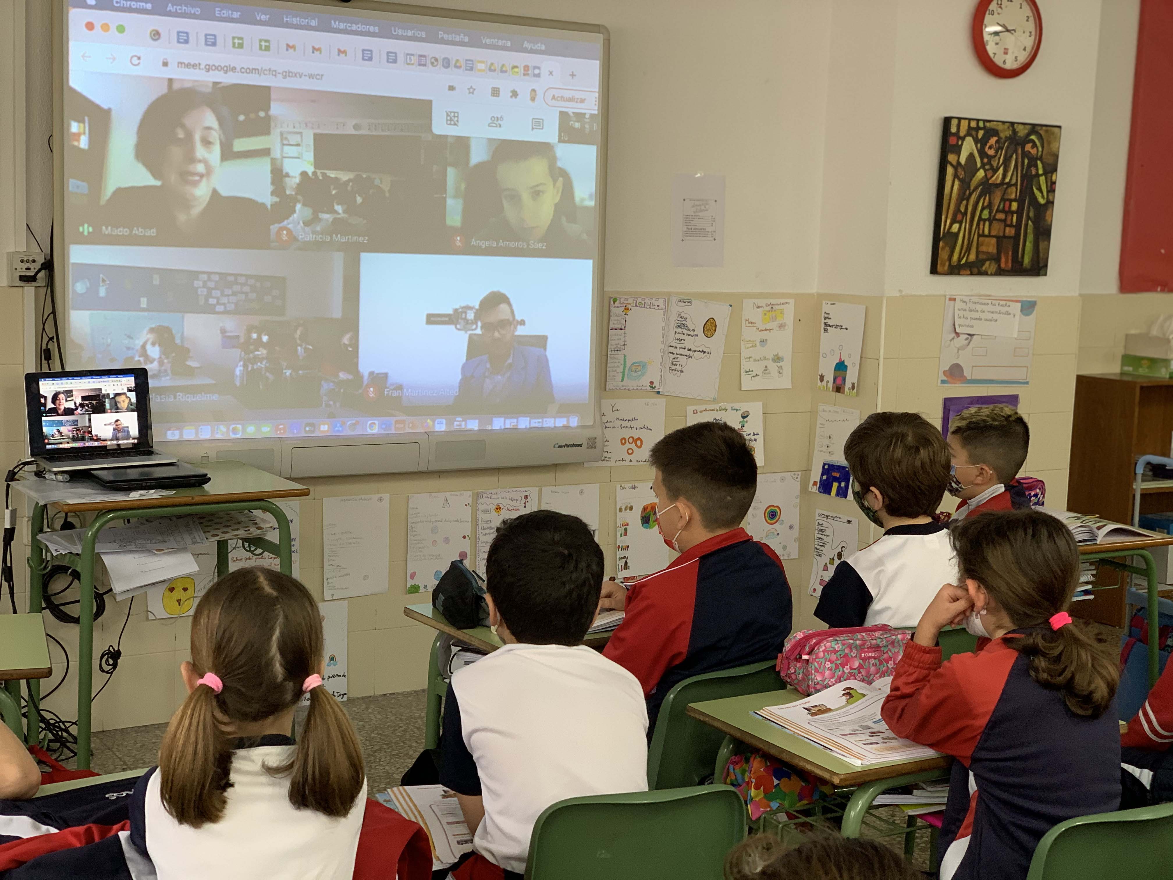 Els alumnes, de 2n de primària, van mantindre el divendres 5 de març una trobada online amb Fran Martínez alcalde i Mado Abad regidora, en el que han pogut conéixer més de prop les funcions de l’Ajuntament, el personal que treballa en la institució i el treball d’alcaldia.
