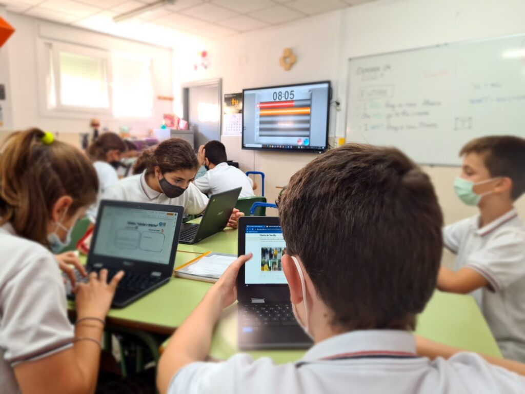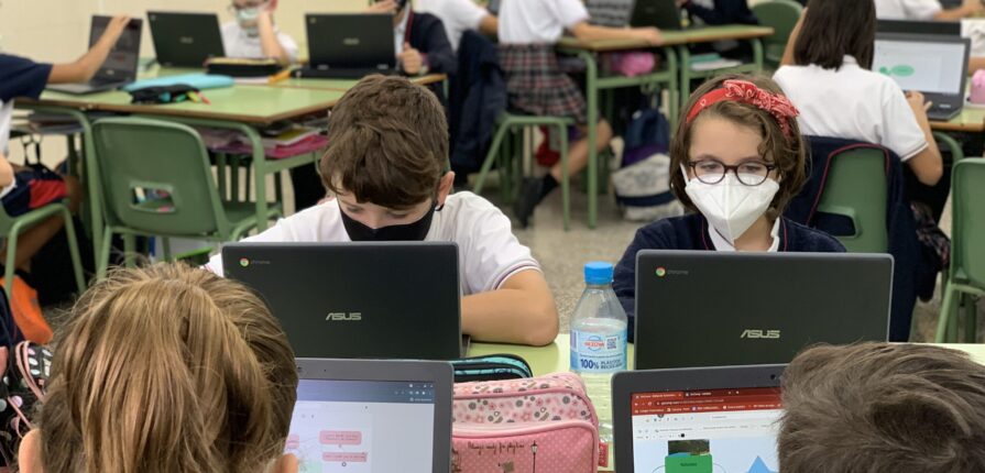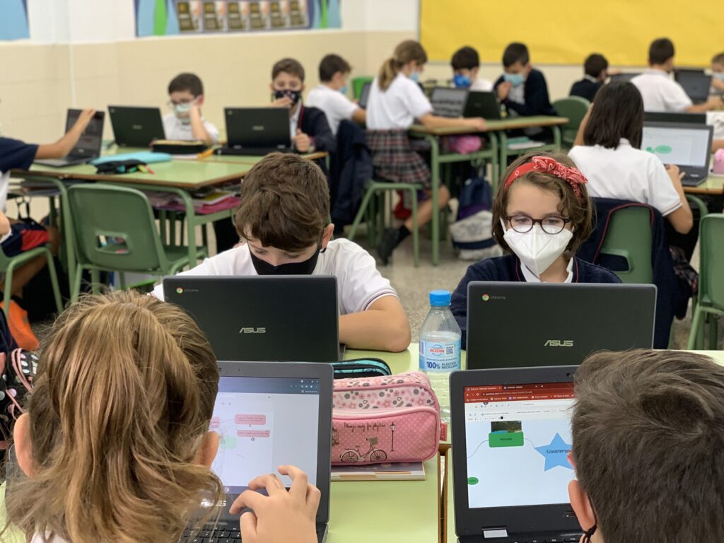 El colegio ha apostado por mejorar la competencia y la educación digital de nuestro alumnado a través del uso de Chromebooks en el aula. Sin olvidarnos de herramientas como son las libretas, pizarra, exposiciones orales, expresión escrita, técnicas cooperativas, rutinas y destrezas de pensamiento… Este proyecto mejora los procesos de enseñanza-aprendizaje, potencia las relaciones inter e intrapersonales, fomenta el pensamiento crítico y aumenta exponencialmente la motivación en nuestro alumnado.