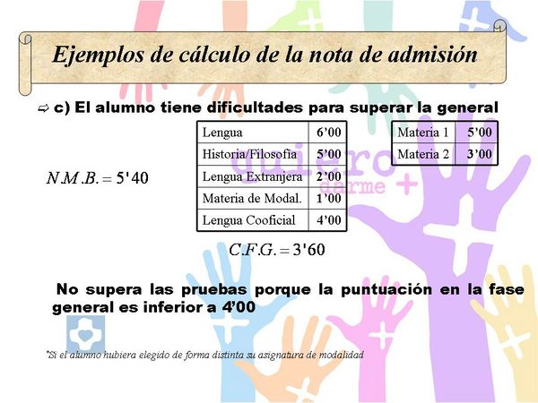 Vamos a ver distintos casos de alumnos y como puede variar la nota en función de realizar una buena o mala elección de las asignaturas en la fase general y en la fase específica.